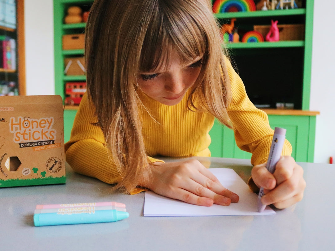 Introducing our classic-sized crayons in beautiful pastel colors! The perfect next step from Honeysticks Super Jumbos, Honeysticks Jumbos, in their unique pastel colorway, are designed for children who have developed their pencil grasp, with ‘regular’ (but not boring!) crayon length.