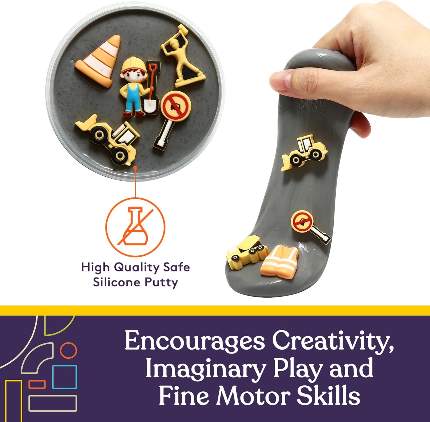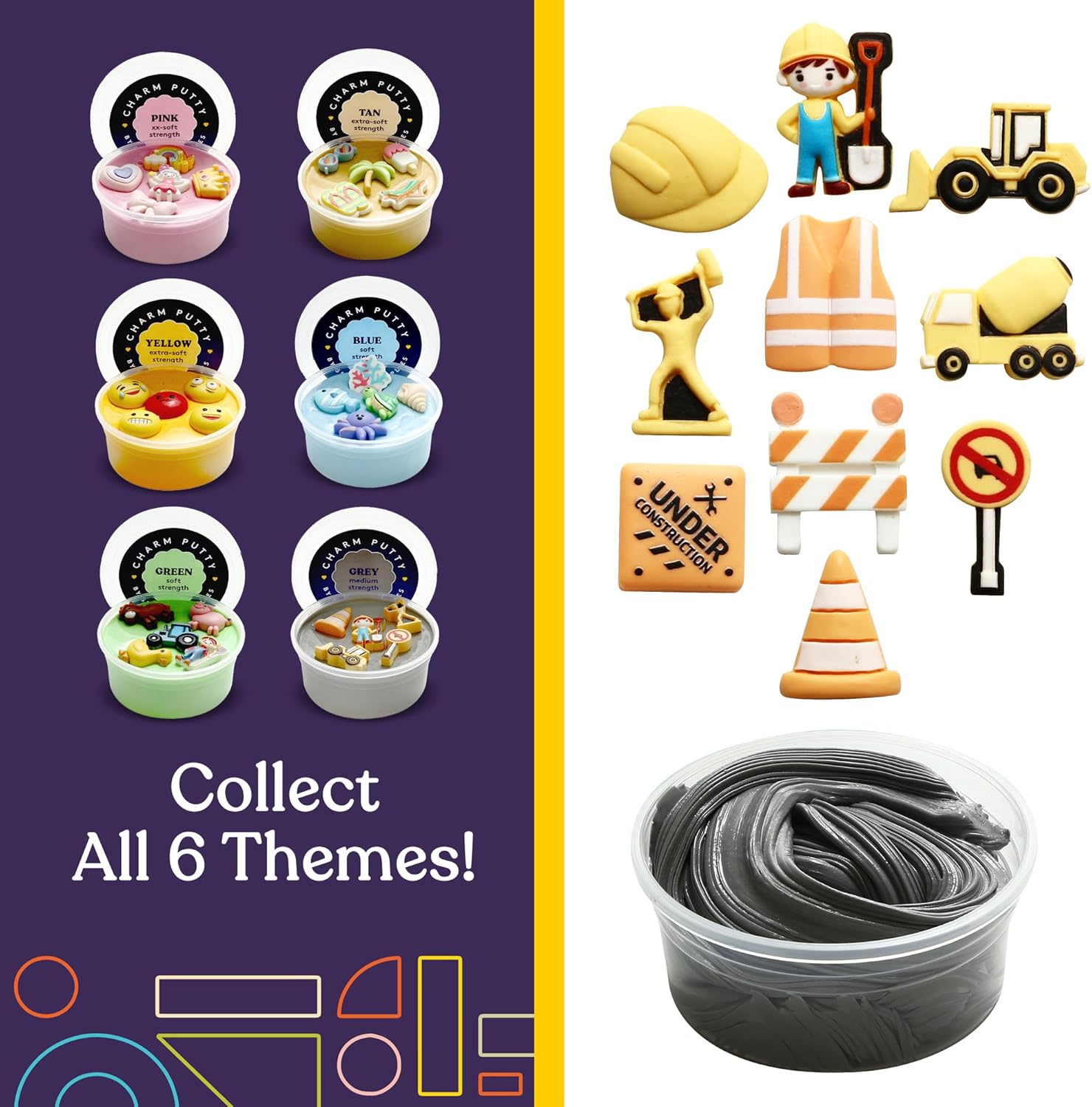 Sensory Therapy Putty for Kids and Adults with 10 Cute Charms - Resistive Hand Exercise Stress Relief Therapy Putty, Five Ounces of Each Putty (Construction Set - Strength: Medium)