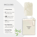 Our Fitted Sheet is meticulously crafted from 100% bamboo, offering an unparalleled sleep experience that is both buttery-soft and naturally cooling. Designed for those who prefer the simplicity of minimalist bedding, this fitted sheet provides the luxury of hotel-quality comfort with a secure, snug fit that stays perfectly in place all night long. The generous 18" deep pockets ensure it effortlessly accommodates even the thickest mattresses, while maintaining a smooth, seamless look. Breathable and moisture-wicking, it ensures a cool, clean sleep environment, making it ideal for warmer nights or those who tend to sleep hot. Naturally hypoallergenic and odor-resistant, this fitted sheet is gentle on even the most sensitive skin, elevating your sleep routine to new levels of comfort and relaxation. With no need for extra layers, it offers a refined, minimalist approach to luxury, transforming your bed into a serene, restful sanctuary. Sleep cool, clean, and effortlessly luxurious—an essential upgrade for those who value both simplicity and indulgence in their bedding.