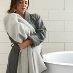 Wrap yourself in the indulgent softness of our oversized Bath Towel, designed to bring the feel of a five-star spa into your own bathroom. Crafted with a plush blend of 60% Bamboo pile and 40% Cotton webbing, it’s incredibly absorbent, gentle on skin, and built to last. The generous 30x54 size offers full-body comfort, with hangtag for drying between uses. With our modern no-shrink edging and a cloud-like weight, these bathroom towels deliver the perfect balance of coziness and performance, and stay perfectly-shaped, wash after wash.