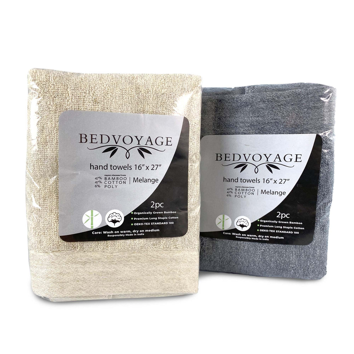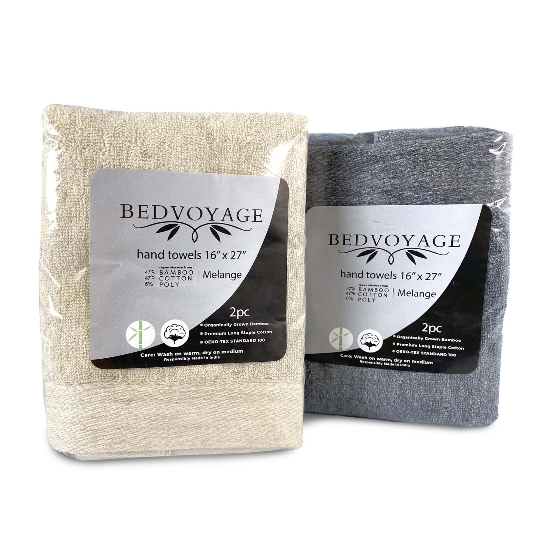 Our super plush and thirsty Melange hand towel sets are made from ultra-absorbent viscose from bamboo and long staple cotton blend. They soak up moisture fast and dry quickly, they're also hypoallergenic and gentle to sensitive skin. The added benefit of being naturally odor and mildew-resistant, they'll stay fresh, even in humid bathrooms. Includes 2 Hand Towels (16x27) with 600GSM.