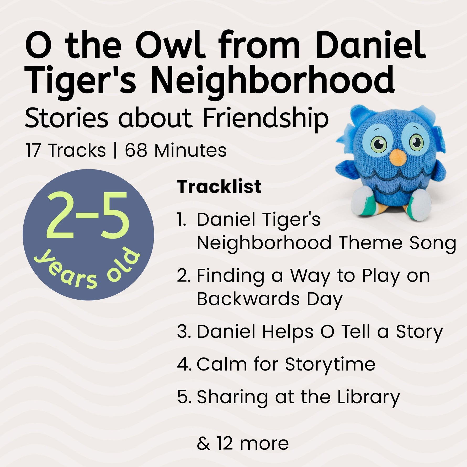 Enjoy more heartwarming stories from Daniel Tiger’s Neighborhood through O the Owl, a smart and curious friend who’s never seen without a book! In this audio experience, your child will engage with stories and songs to learn important social emotional lessons, such as how to navigate friendships, share, and self-regulate.