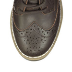 Your guy will be styled for success in our classic wingtip oxford with brogue details. Our real leather construction features a lace-up closure, lined inner with cushioned footbed, and a slightly stacked heel. The perfect finishing touch for any dapper look.