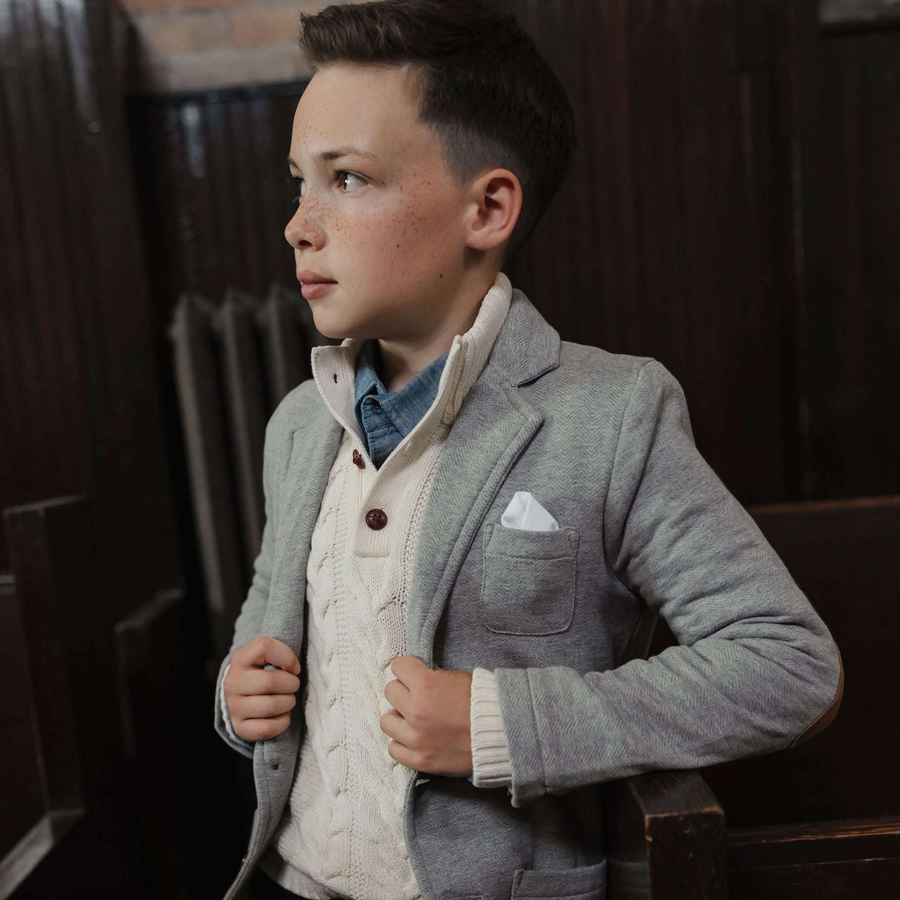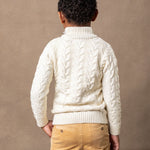 Luxuriously plush cables in our signature organic cotton yarns make this sweater a must have for cooler months. Features a rib knit mock neck with faux leather button closures at the center front placket. Fully adorned with a classic cable knit. Pairs perfectly with our collection of organic cotton button downs and pants.