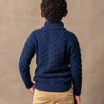 Luxuriously plush cables in our signature organic cotton yarns make this sweater a must have for cooler months. Features a rib knit mock neck with faux leather button closures at the center front placket. Fully adorned with a classic cable knit. Pairs perfectly with our collection of organic cotton button downs and pants.