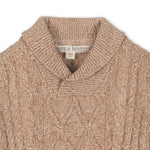 Our handsome shawl collar sweater crafted from soft organic cotton is the ultimate in comfort and style for your boy. Special attention to details such as the cozy shawl collar and allover cable design make this an instant classic. Pairs perfectly with our collection of organic cotton button downs and pants.