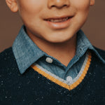 Our organic cotton v-neck sweater is incredibly soft but completely machine-washable, meaning this classic sweater is bound to be a year-round MVP for your little guy. Fleck yarns and athletic tipping at the collar and cuffs elevate the sweater to something special.