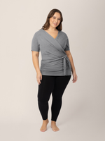 Organic Cotton Skin to Skin Short Sleeve Wrap Top | Charcoal Grey Heather