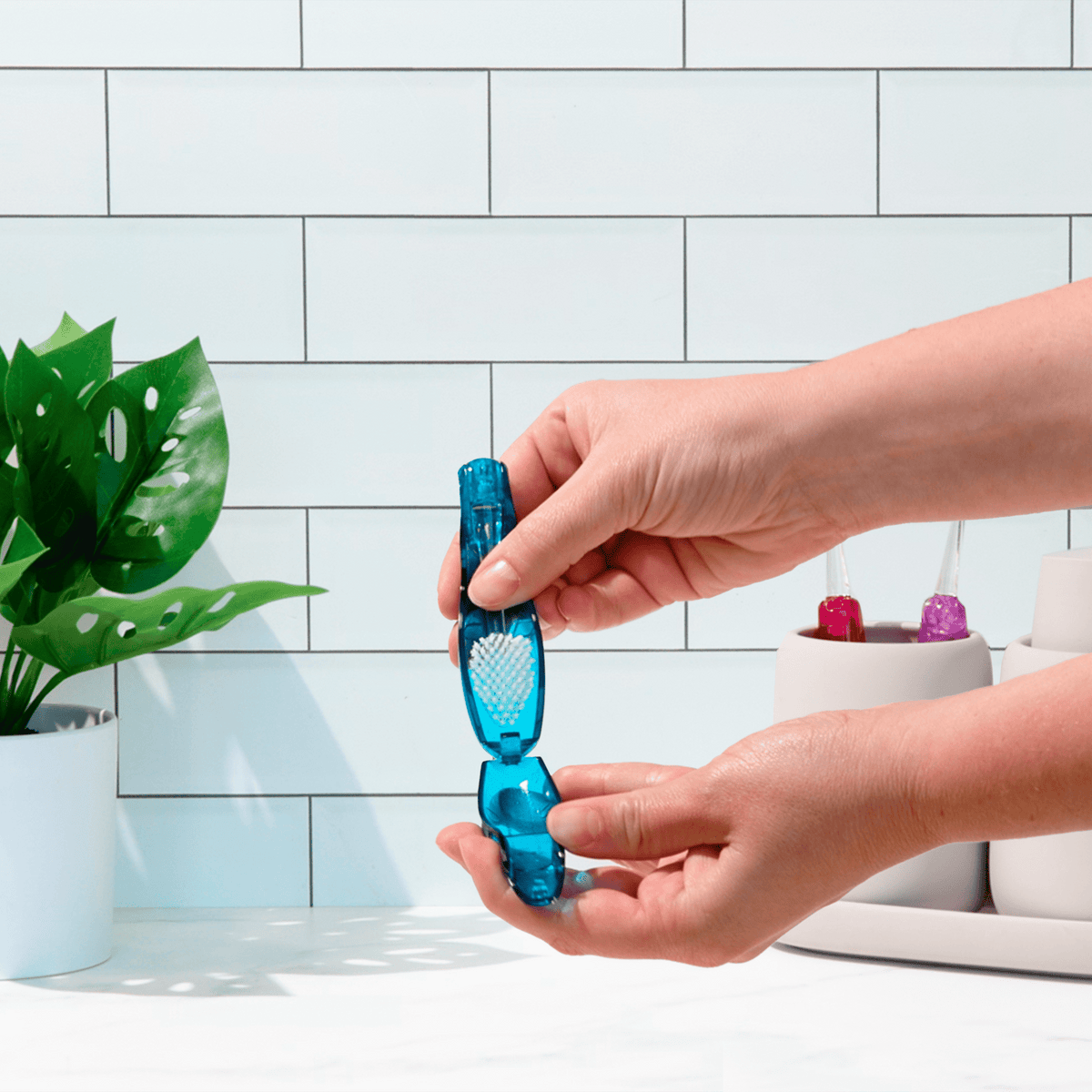 This travel-sized toothbrush features a unique 2-in-1 hideaway design that acts as both a toothbrush and travel case. Plus, with our trademark oversized brush head with vegetable-derived bristles and ergonomic plant-based handle, you know you’ll still be getting the best clean wherever you go. One more benefit? This travel toothbrush has an eco-friendly replaceable head so you can make the footprints without leaving them.