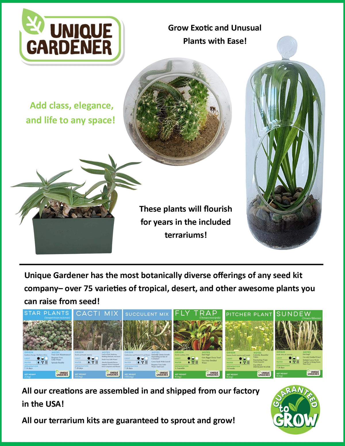 Flytrap Garden Glass Terrarium Seed Starting Kit