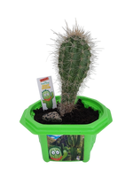 Sully is the familiar cacti shown in western films and is the State flower of Arizona. One of the largest and most slow-growing cacti, it can reach heights over 60 feet, live for more than two centuries, and weigh up to 20,000 pounds. These cacti provide a habitat for many desert creatures. They are surprisingly quick to germinate and fast to grow. They thrive in direct sunlight or indirect bright light and need sparse amounts of water. This fun and entertaining kit comes with everything you need, even a collectible plant stake and genuine natural jasper stone- just add water!  The natural jasper stone represents the sand that they grow in!