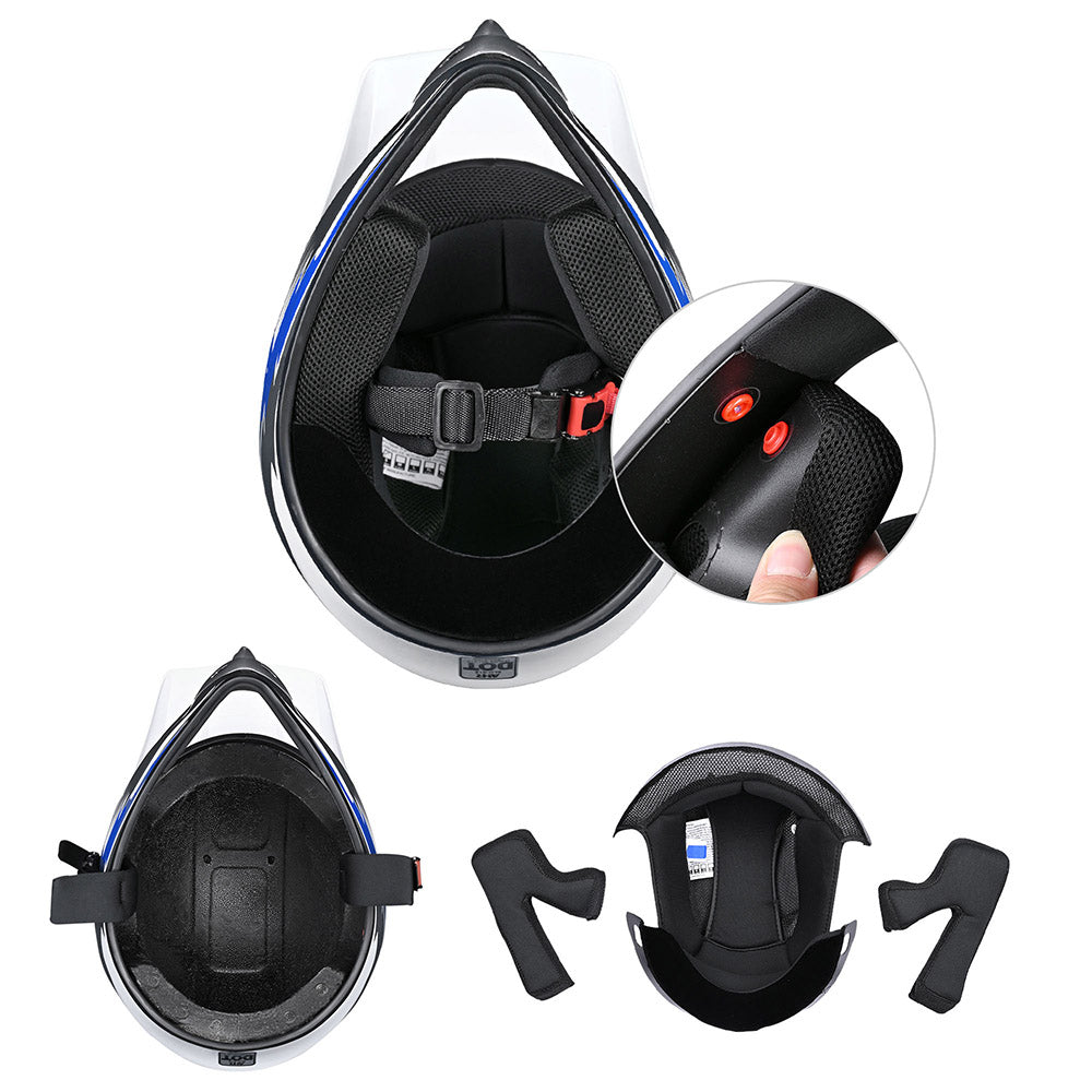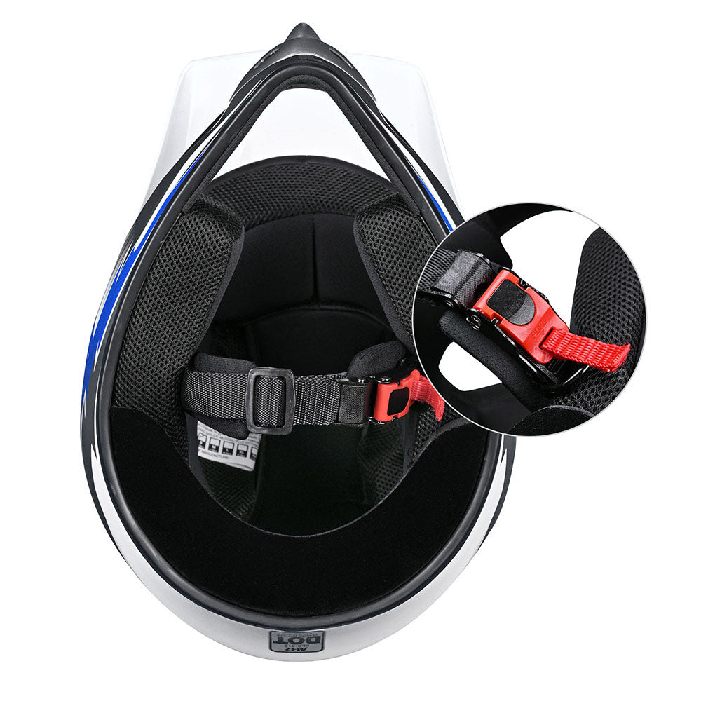 AHR H-VEN12 Blue Full Face Motorcycle Helmet with DOT approved offering good protection for your ride. Perfect for teenager who is fond of motocross, dirt bike, ATV and MX.