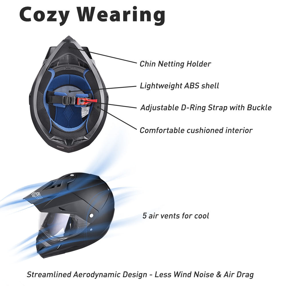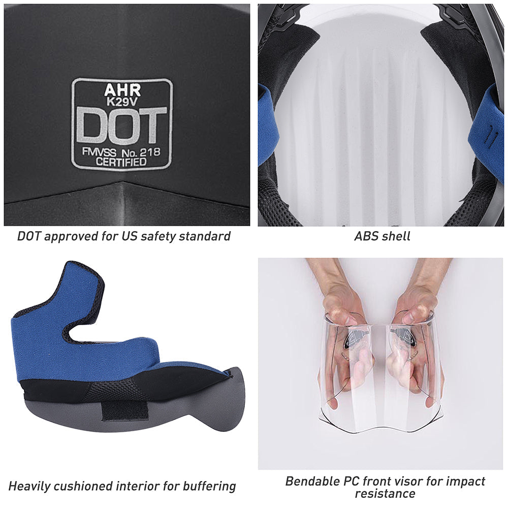 AHR H-VEN30 Full Face Motorcycle Helmet - DOT approved for US safety standard for safer riding (The L/ XXL size is AHR H-VEN35 dual sport full face motorcycle helmet)
