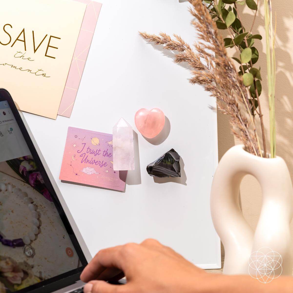 Where do you seek peace and positivity? Invite the protective powers of Rose Quartz, Black Obsidian, and Clear Quartz. Place these crystal magnets where you need them most. And let them attract divine energy to your space.