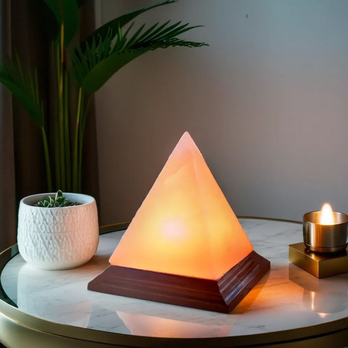 Enhance your living space with the captivating charm of our Pyramid Himalayan Pink Salt Lamp. Sourced from the pristine Himalayan mountains, each lamp is a distinctive work of art, casting a warm, soothing glow that fosters a serene atmosphere. Crafted by skilled artisans and responsibly sourced, this lamp seamlessly introduces the raw beauty of nature into your home. Each lamp is equipped with a dimmer to provide customizable brightness. Elevate your surroundings with the authentic and tranquil presence of our all-natural Himalayan Pink Salt Lamp.