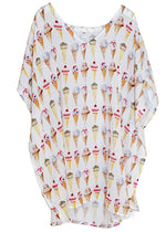 Best-selling ice cream print cover-up poncho for the beach to match ice-cream print swimsuits and accessories such as the cute donut swimming goggles for a complete Stella Cove beachwear.