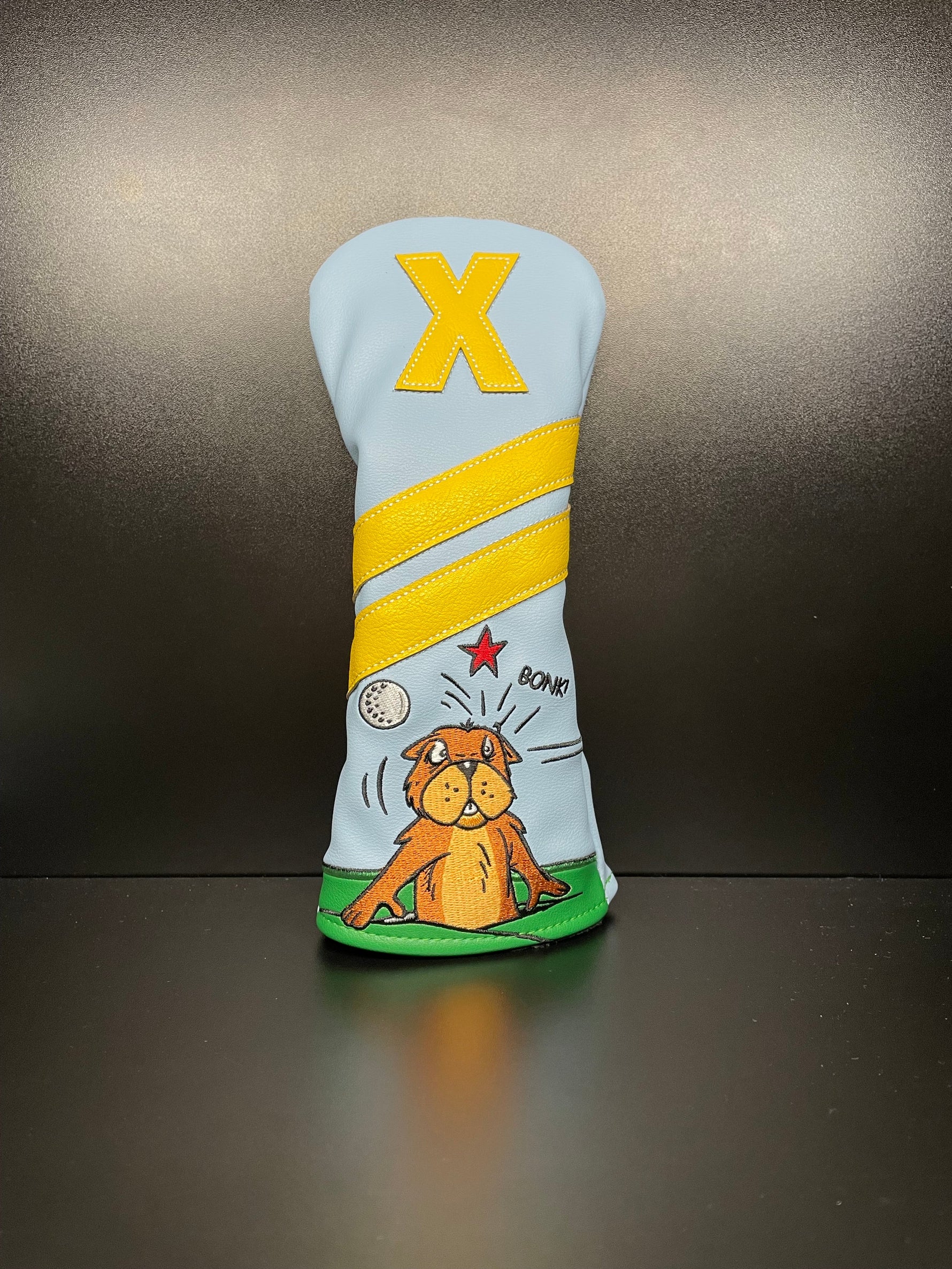 Typically made from plush, soft materials, the headcover serves to protect your club while bringing a bit of personality to your golf bag. The "Bonk Gopher Headcover" is likely designed with vibrant colors, exaggerated features (like the gopher’s large eyes and mischievous grin), and a fun, cartoonish style that makes it a memorable piece of golf equipment.