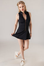 Turn heads and break par in the ultimate sculpting women’s golf dress—where sleek design meets all-day performance. Crafted to flatter every body, this women's sport dress features a contour-enhancing fit, a zip-front neckline, and clean lines that create a bold yet feminine silhouette. Built-in shorts offer freedom to move, while the integrated bra provides lift and support with zero fuss.