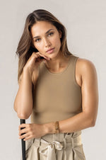 This top does it all -- replaces your sports bra, favorite tank, and sexy top.  The compact knit fabric offers the ultimate hold (aka no bra necessary) while being so comfortable you won't want to take it off.  This is the perfect piece to pair with any of our pants or skirts, and it comes in coordinating colors for all!