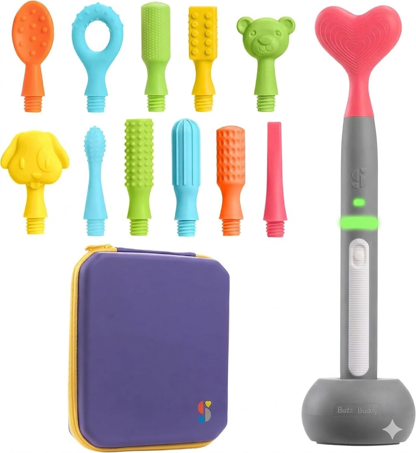 Get this oral stimulation tool for kids with 12 individual stimulating heads today and help ease them into trying new foods or supporting healthy speech growth starting today.