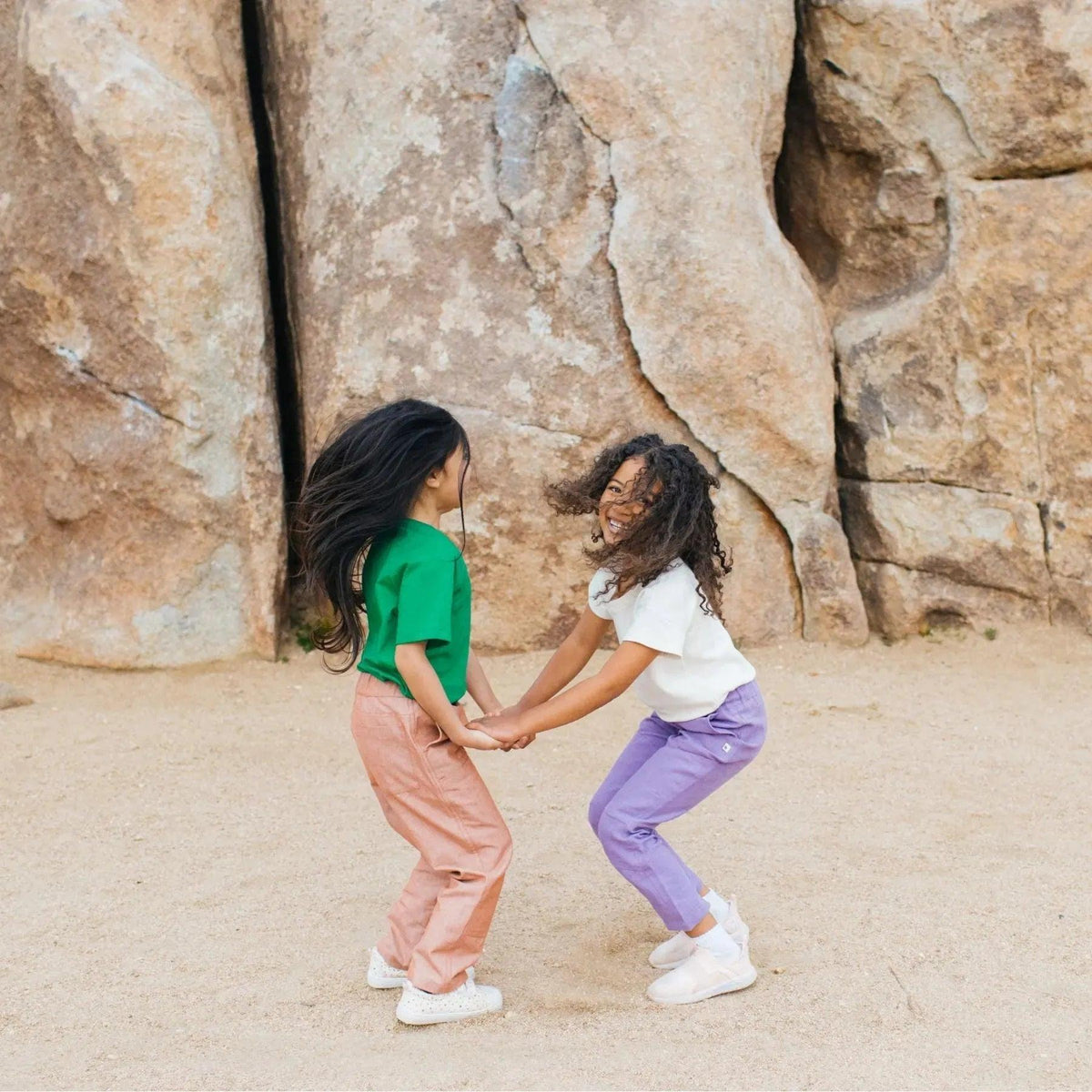 Kids move freely in our straight-leg mid-weight children's linen pants with reinforced knees. 100% linen and organic dye. With an elastic drawstring waist, extra-long legs for growth spurts, and reinforced knees to outlast any kid. Designed to fit 2x longer.