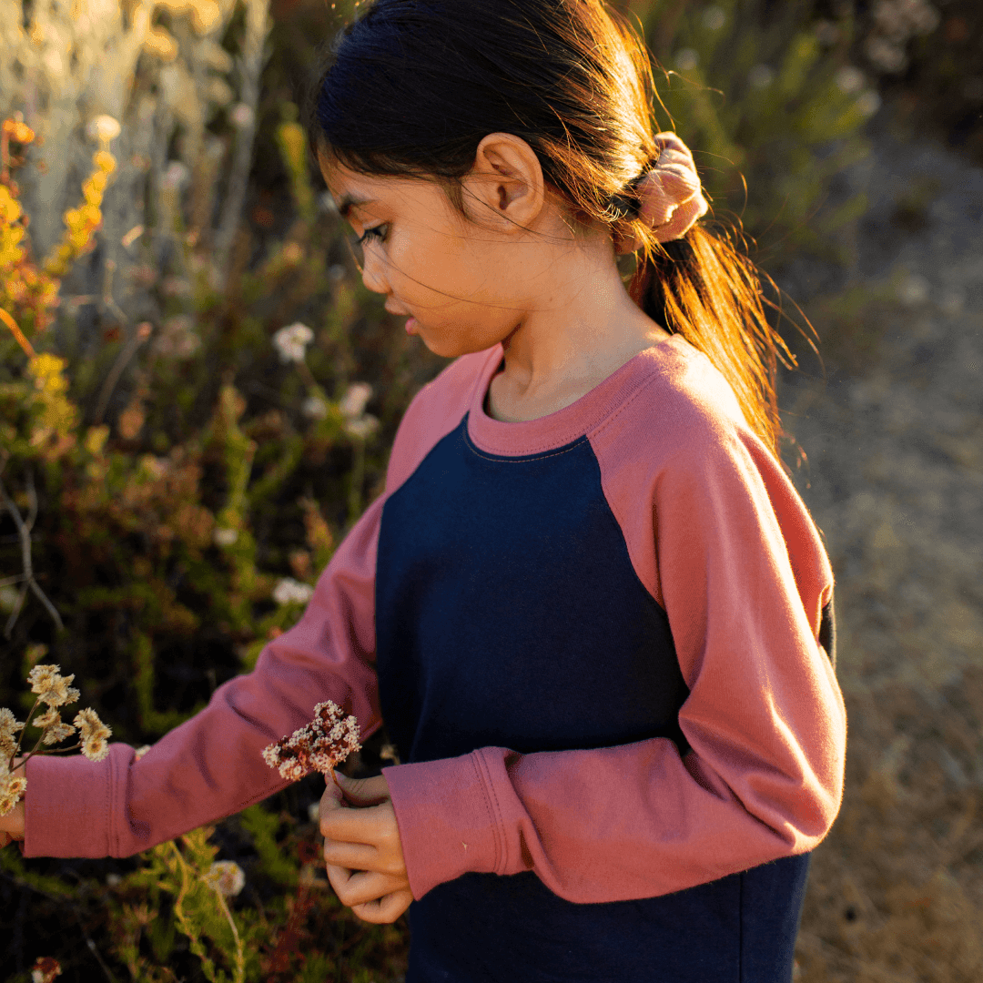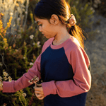 The Stevie Raglan Sweatshirt in Rose and Navy brings softness and strength together in one go-anywhere layer. Crafted from durable organic cotton French terry, this color-blocked favorite combines pretty and practical in a just-right everyday sweatshirt.