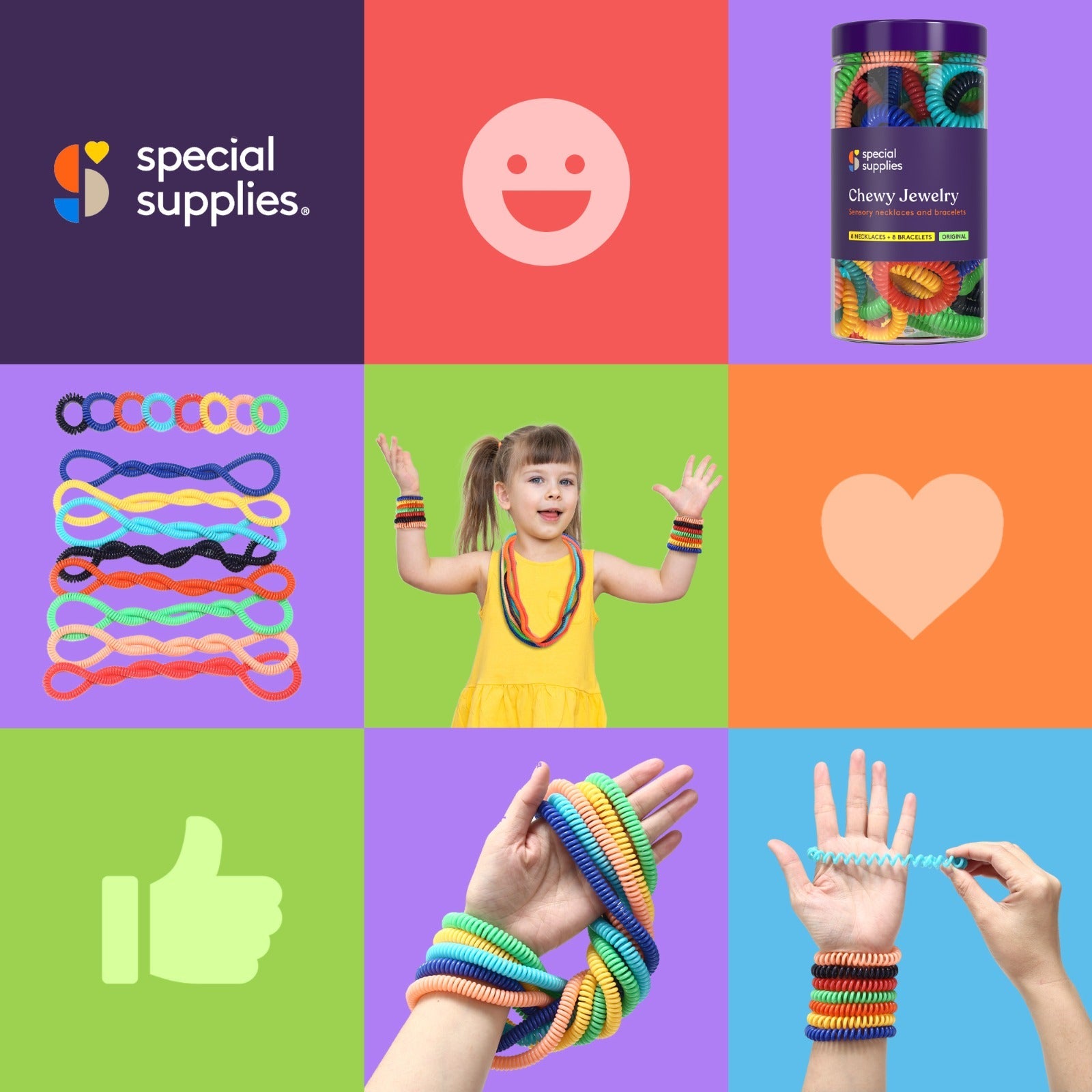 Many children struggling with stress, ADHD, or even autism need extra support when it comes to oral stimulation. That’s why it’s important to give them outlets that are safe, effective, and keep them focused and relaxed, especially in stressful or overwhelming environments. We developed Special Supplies Sensory Necklaces and Bracelets as a fun, interactive way to satisfy both hands-on and oral needs, while being quick, convenient, and safe options for children X and up.