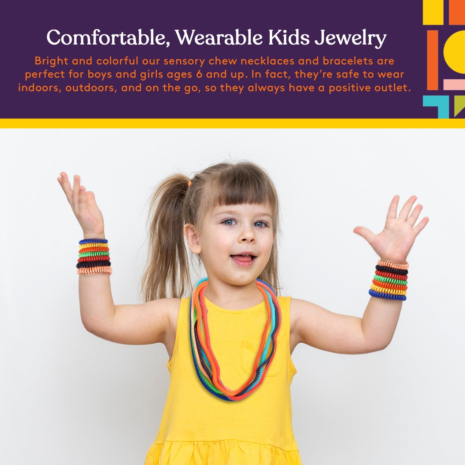 Ease stress and anxiety, refocus young minds and keep fidgeting in more control with flexible, chewable necklaces and bracelets from Special Supplies.
