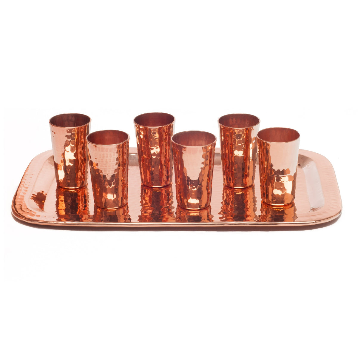 These copper shots will enhance your drinking experience with a cool balanced profile to your favorite spirit. Celebrating classic style and ancient craft, our copper shots offer an elegant display for serving up to six shots or flights of beer! At the party, pull these elegant tiny cups from the ice bucket to bring forward the cold, wet metal profile, offering balance and complexity to your preferred Rum, Vodka, Whiskey, Brandy, or any fine spirit.