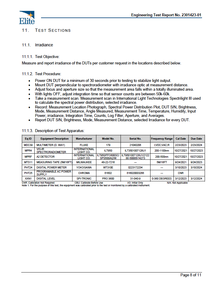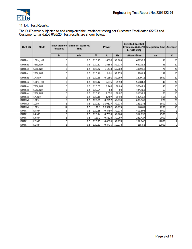 Light Irradiance (@ 6"):