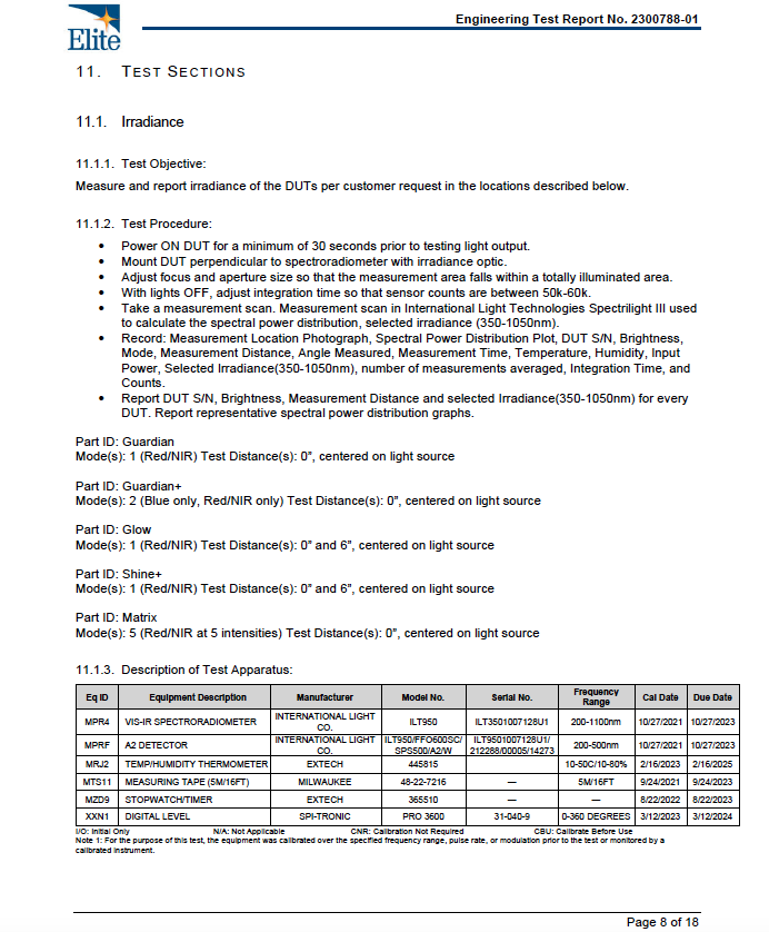 - Spectrum: 630nm (red) & 850nm (NIR)