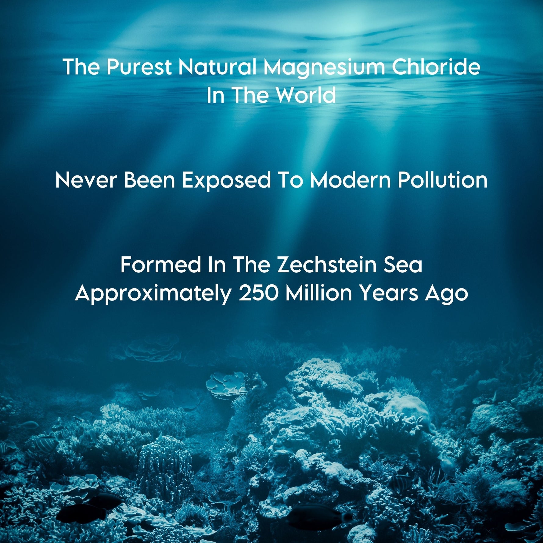 Our naturally-sourced magnesium chloride is only found 1500 meters underground in the ancient and pristine Zechstein Sea Bed. Formed 250 million years ago and protected from modern day pollution, it’s the purest source of magnesium chloride in the world. As it melts into a warm bath, it helps to relieve tired muscles, while easing tension in record time. Its delicate flakes drift into the steam like falling snow. Feel your worries melt away with it.