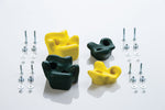 Plastic Climbing Rocks from Creative Cedar Designs: don’t settle for subpar swing set accessories! Ensure your child’s safety & the longevity of your outdoor play structure with this set of (4) climbing holds & easy-to-install mounting hardware. Begin your residential rock climbing adventure on your own outdoor playset, jungle gym or wooden swing set with this multi-color set of plastic climbing wall holds!
