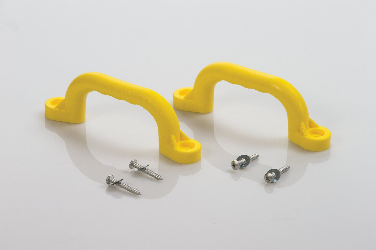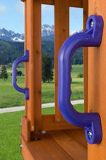 Plastic Safety Handles from Creative Cedar Designs can give you more peace of mind about your play set! Install play set safety handles almost anywhere on most backyard swingsets, creating a stable climbing hold wherever your kids need support. Ensure your child’s play-safe swing set experience with this set of two 9” playset handles, do-it-yourself hardware & illustrated directions!