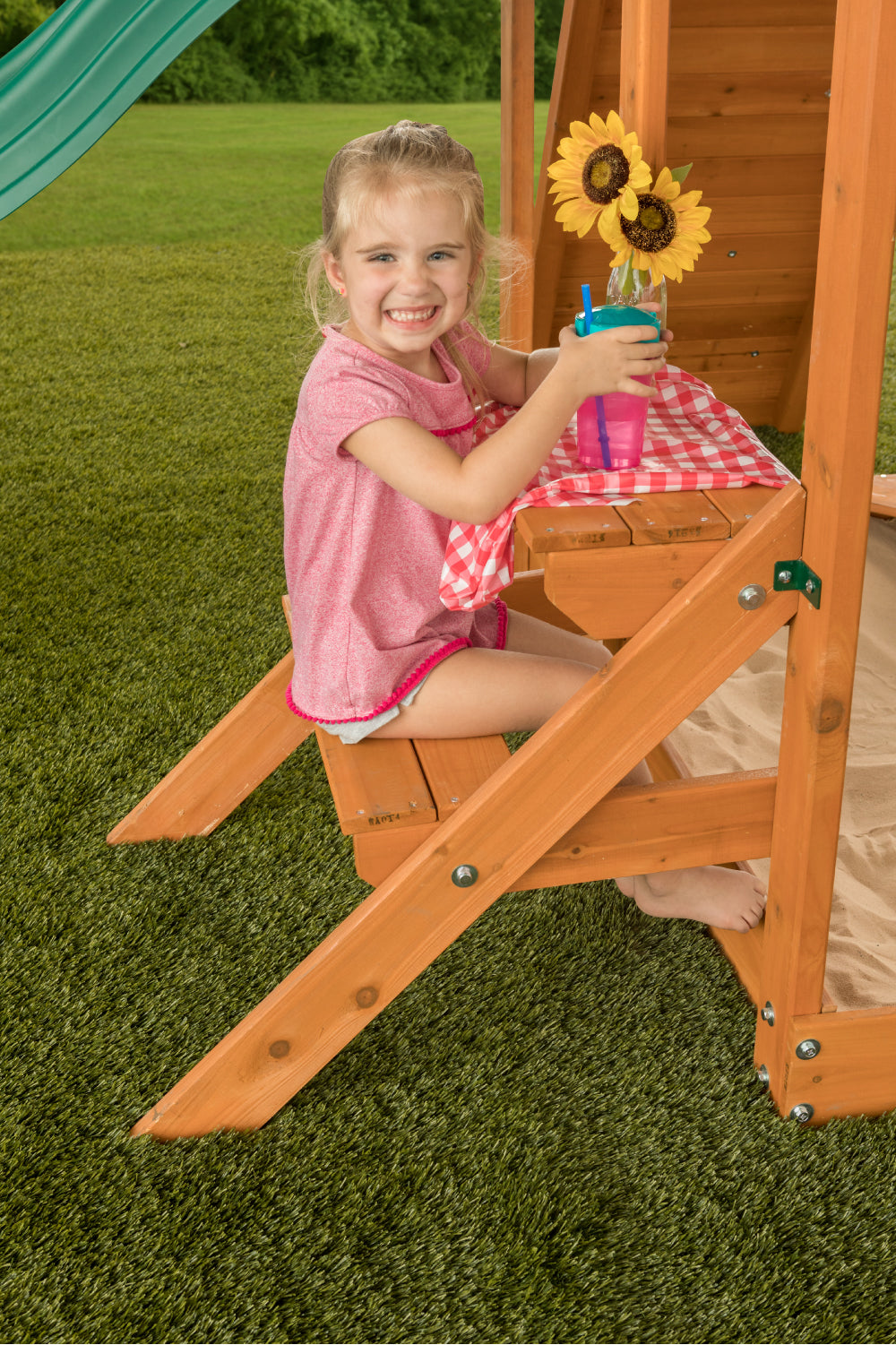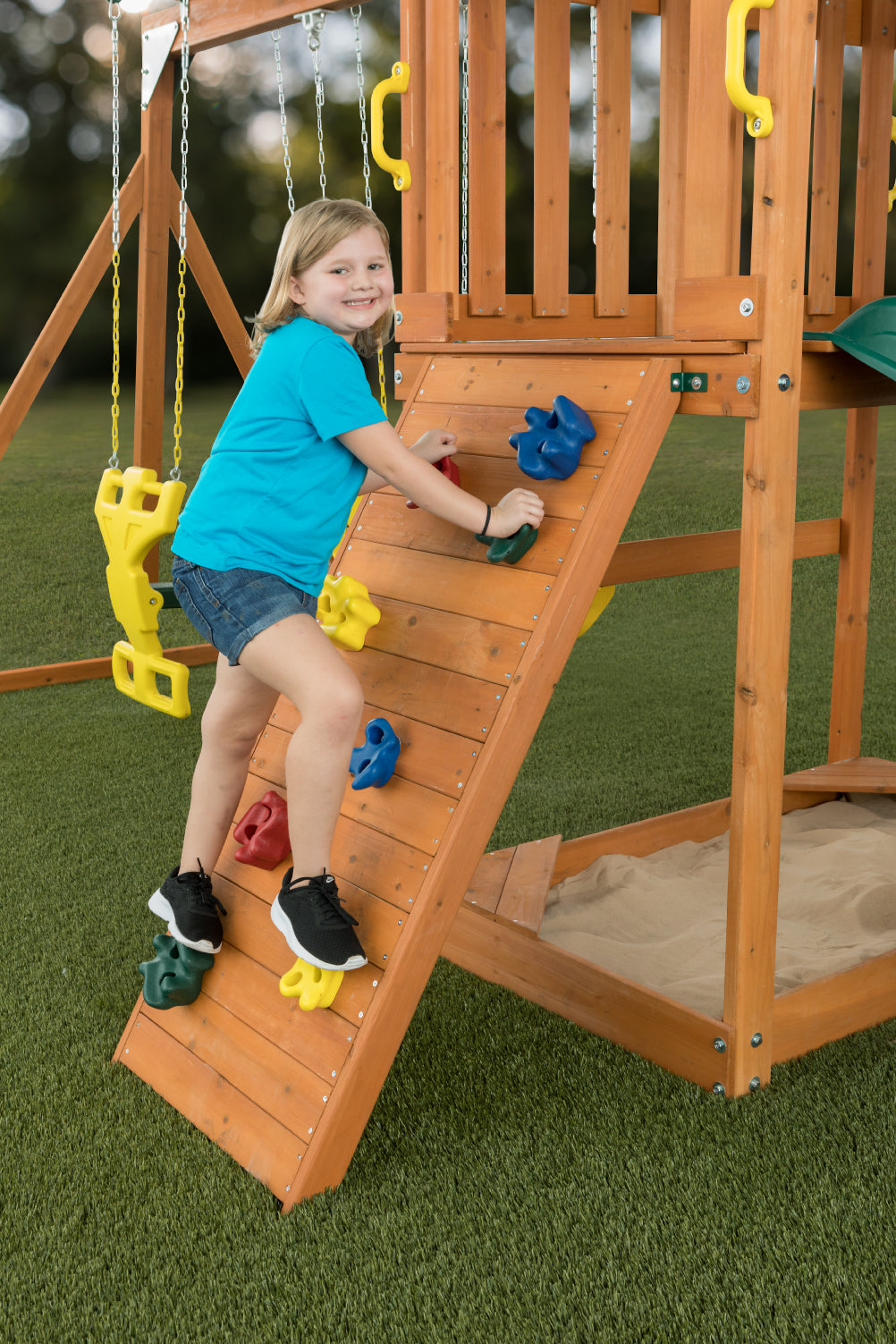 - Vibrant, durable polyethylene construction of swing set accessories is kid-friendly and adds a burst of color to your backyard swing set
