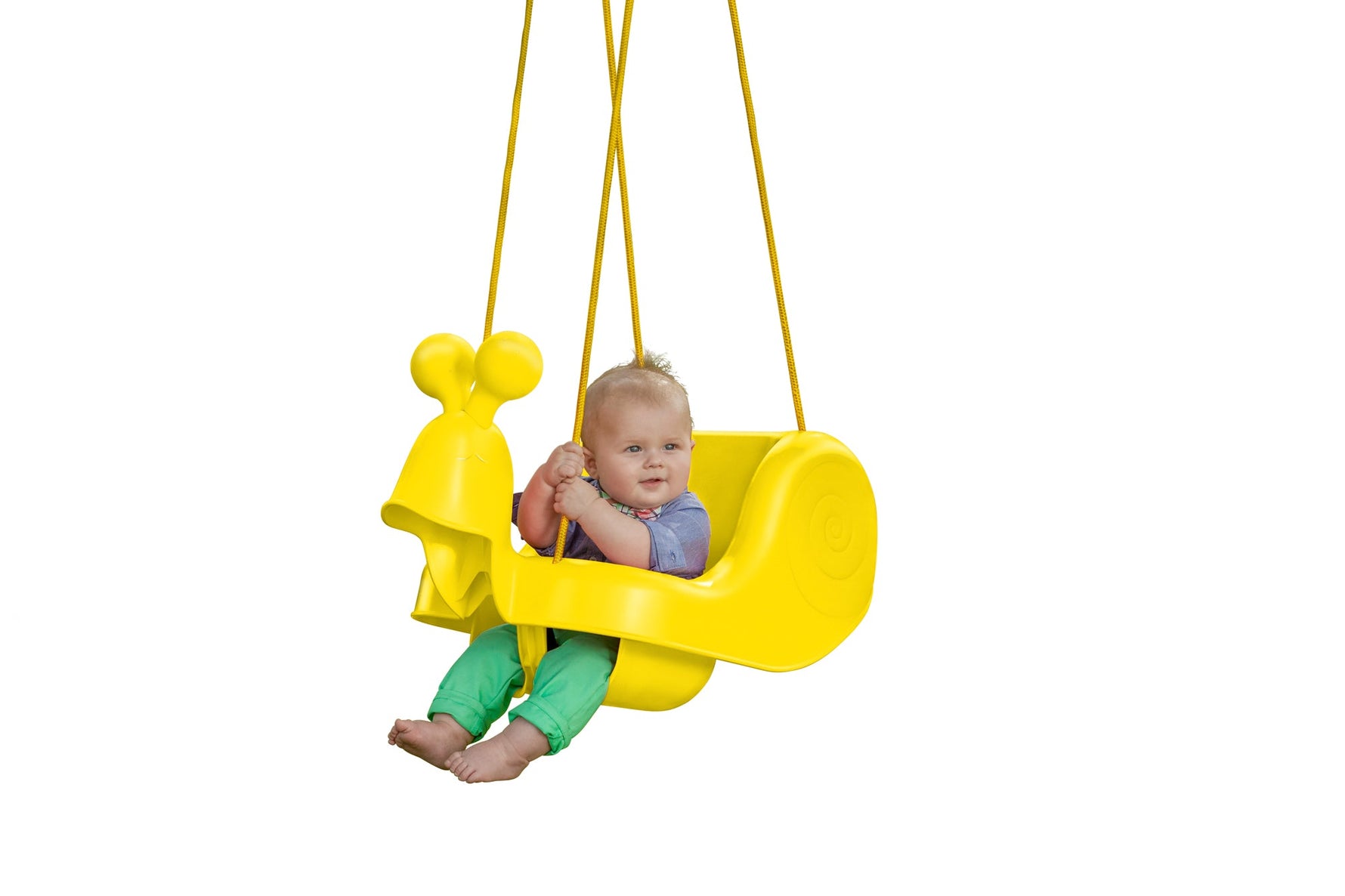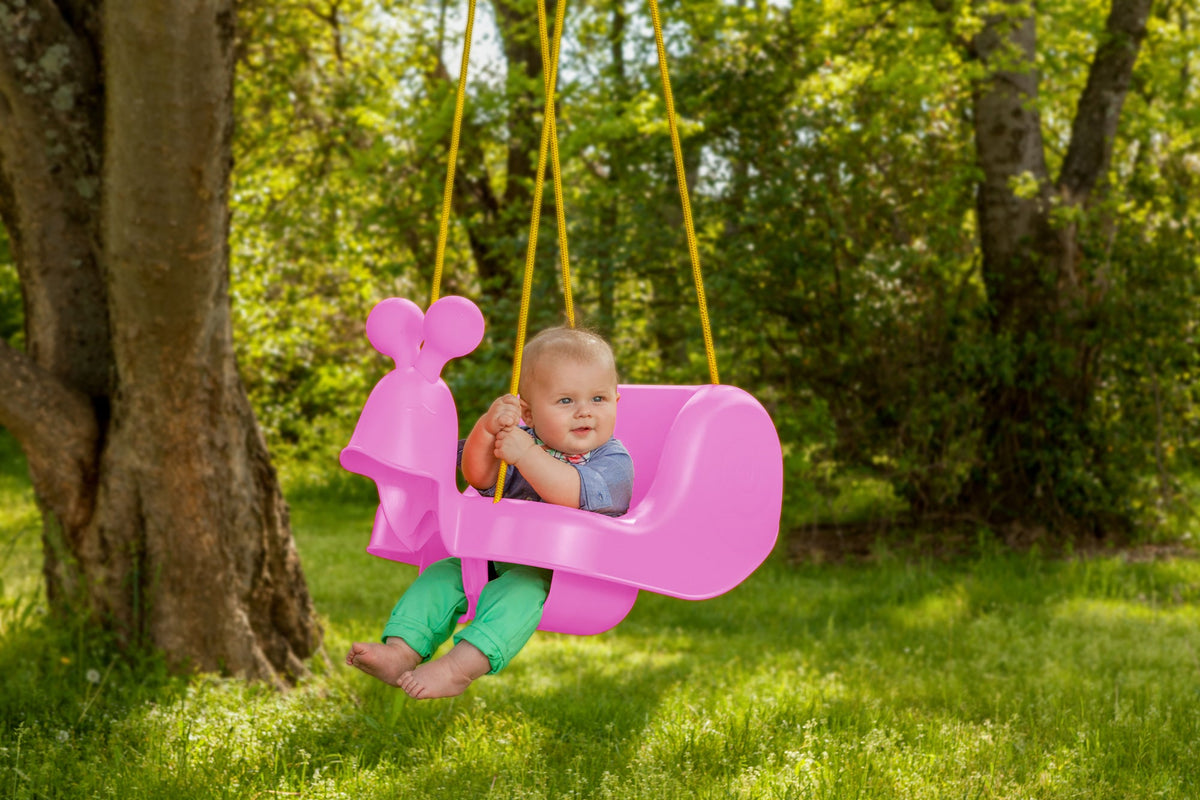 • Eco-friendly polyethylene construction and simple, injection-molded design make an ideal first swing for infants and toddlers