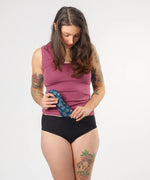 The first alternating ice and heat therapy pack uniquely contoured to fit over women’s lower abdomen and uterus where period symptoms, endometriosis, and postpartum pains originate. Measures 8.5 inches in length and less than 0.25 inches in thickness so that it provides full, effective coverage while also being comfortable and feeling 'barely there' inside the pocket of Nyssa’s VieWear or FourthWear wear therapy underwear.