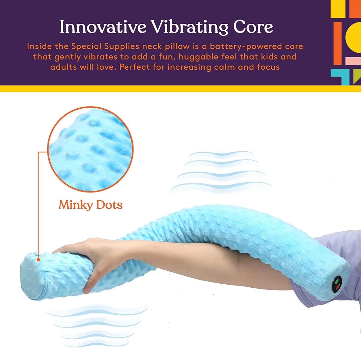Special Supplies Sensory Vibrating Neck Pillow for Kids and Adults Plush Velvet Soft Cover with Textured Therapy Stimulation, Mind and Body Calming Relaxation- Blue