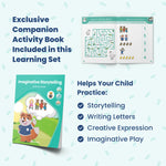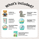 Embark on an enthralling odyssey with our "Imaginative Storytelling" Learning Set. Alongside Craftie Fox, your child will be transported to the magical oasis of Wahzee, embarking on quests that spark creativity and resilience. Embark on an interactive journey with Simon Seal, an aspiring comedian with dreams of fame. Experience the whimsical world of "Lola Dutch", a testament to boundless imagination, where everyday tasks become grand events. Relive timeless classics from "The Shoemaker and The Elves" to "Hansel & Gretel", rendered beautifully in both English & Español. Paired with our immersive Activity Book, this collection weaves narratives and exercises into a rich tapestry of imaginative learning.