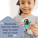 The incredible story of Martin Luther King Jr. comes to life with this age-appropriate biography of the great American hero. Following him as a child living through segregation, this story illustrates the events that inspired Dr. King to become one of the most influential leaders in the country and profiles the speeches and peaceful protest that led Congress to pass the Civil Rights Act of 1964. A wonderful way to introduce mature ideas, this Token addresses the important issue of racial inequality in a way that is understandable to young children.