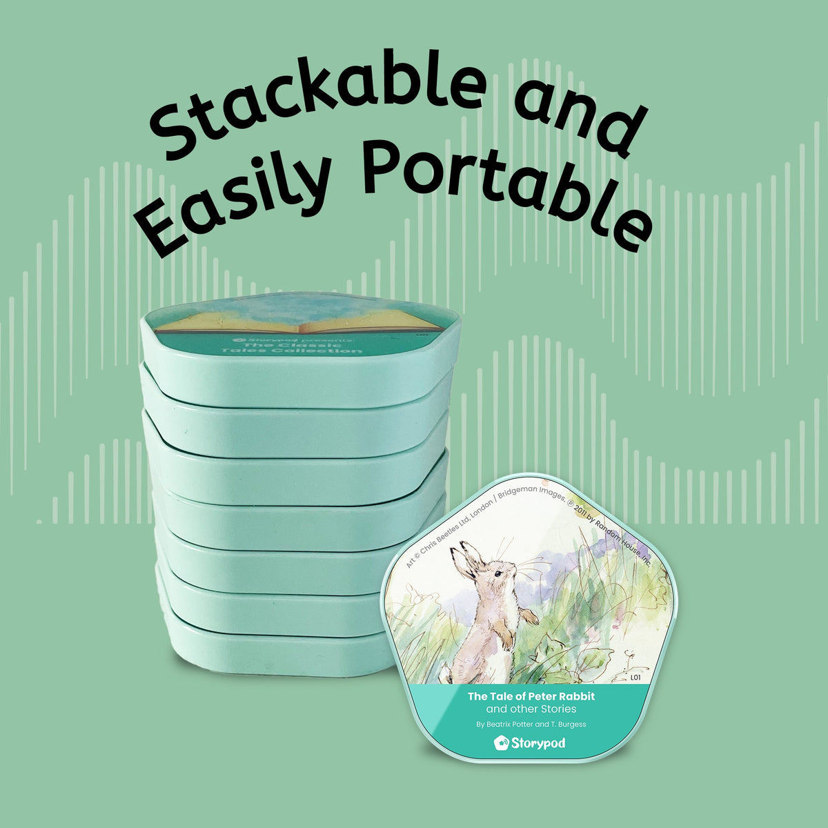 Unlock the magical world of Beatrix Potter with the classic, heartwarming stories of Peter Rabbit. In partnership with Penguin Random House, Storypod brings this collection of six Peter Rabbit tales to life through a charming audio experience that is sure to delight. Join Flopsy, Mopsy, Peter Rabbit, and other woodland friends as they traverse the forest on quaint adventures while learning valuable lessons such as setting boundaries, minding your parents, and taking responsibility.