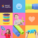Give children or students a fun and interactive toy to play with Special Supplies pull and stretch Fun Tubes that let them bend, stretch, and connect them in hundreds of unique ways!