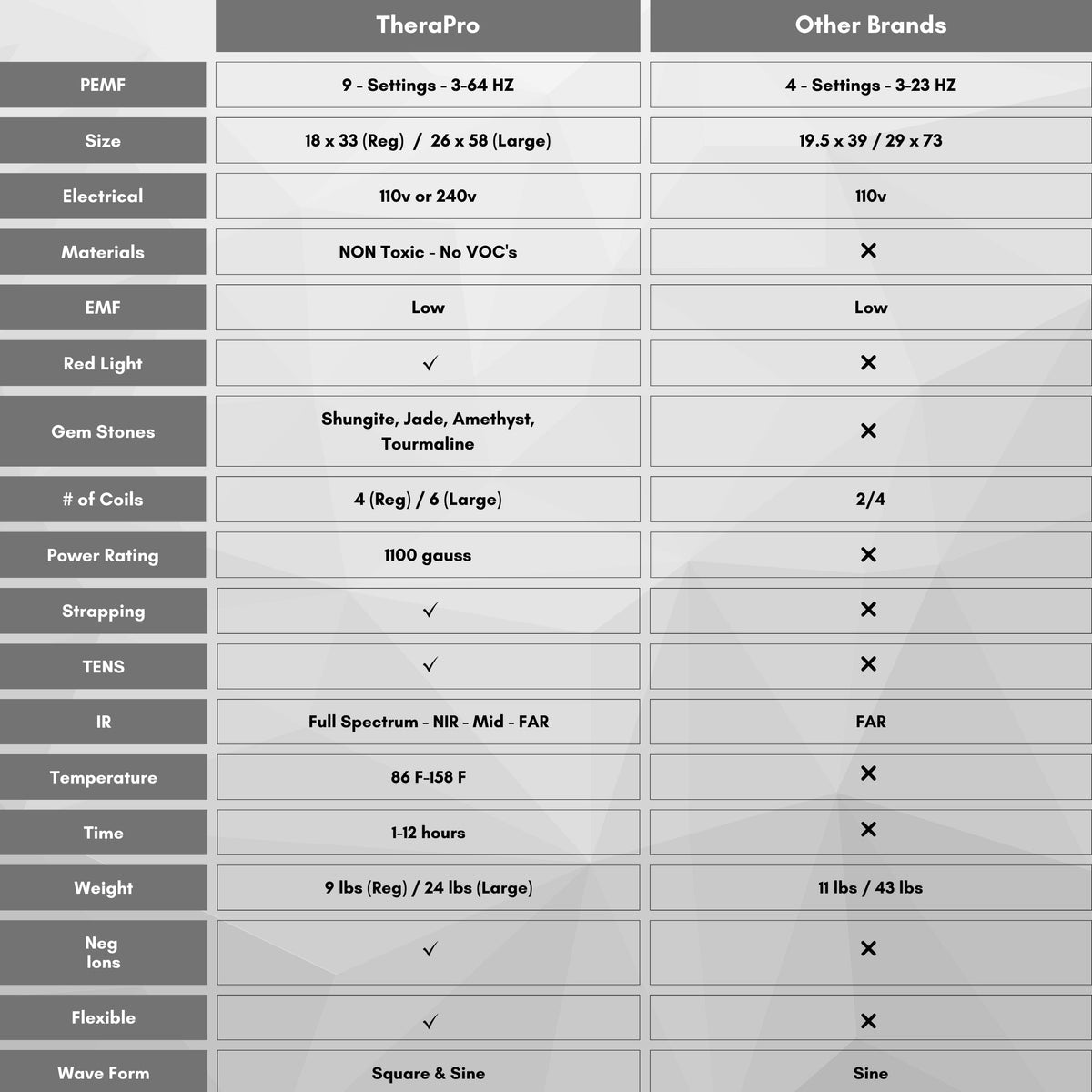 Therasage has completely revolutionized personal healing products with its proprietary line of TheraPro Healing Pads. The difference is Infrared heat. Conventional pads use heating coils and emit high levels of electromagnetic radiation, or EMF. Such products only heat your skin.