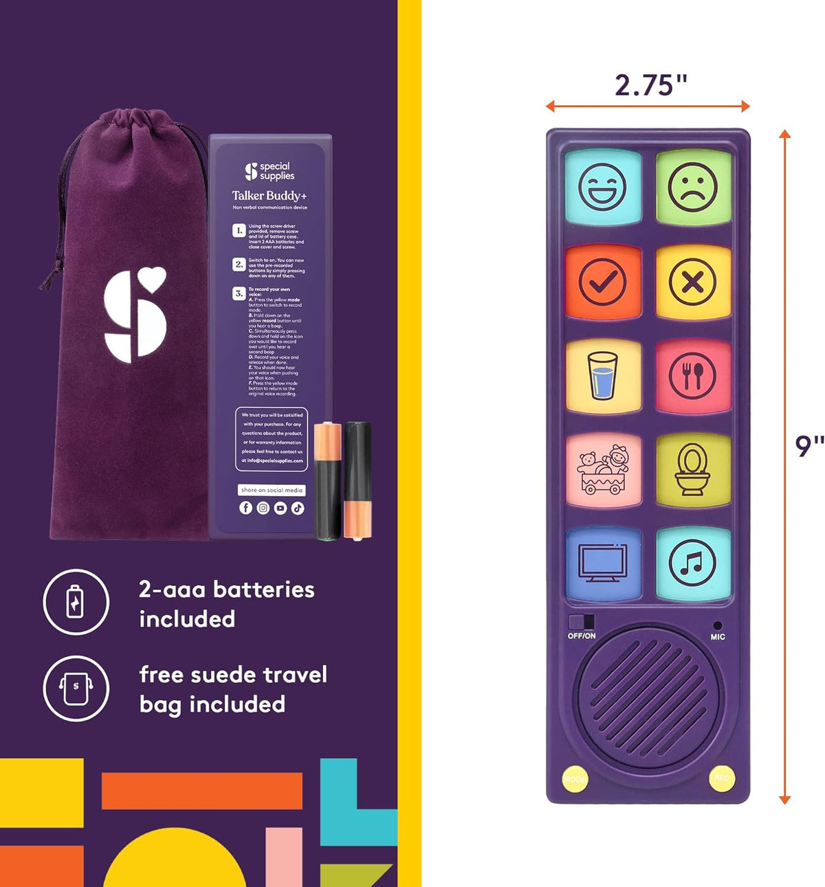 • Travel Bag -The Talker Buddy is lightweight, portable, and comes with a stylish travel bag, making it convenient to pack and communicate on the go, in school, in the car or take to therapy sessions and other activities.