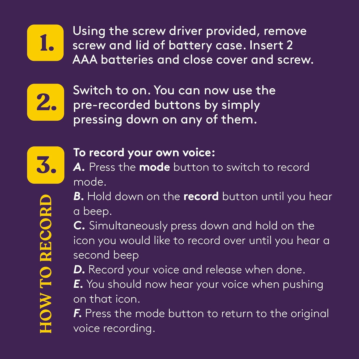 • Customize With Record Option - Customize the device to your specific needs by recording your or the voice of a loved one adding your own words and recordings, to provide a more personalized and effective communication experience
