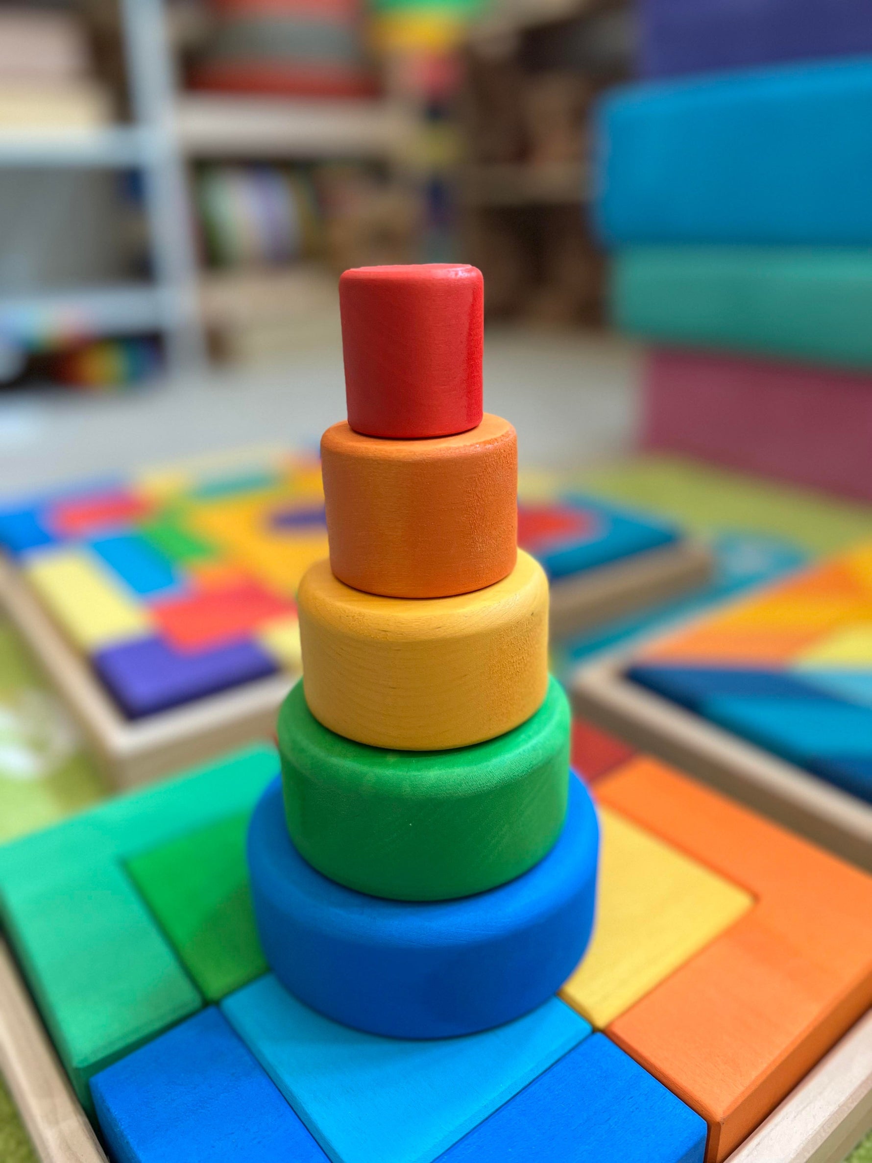 These five wooden bowls are natural, eco-friendly, non-toxic wooden toys. An open-ended toy with many versatile uses: stacking, nesting, sorting, pretend play kitchenware, filling, emptying, and much more.