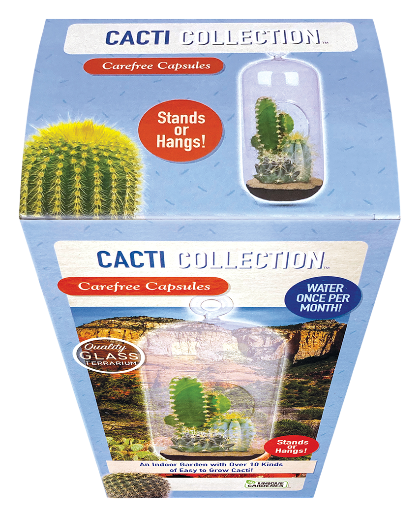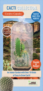 The seeds are quick to sprout and easy to grow.  They will hardly need water to thrive in the glass terrarium.  All seeds are guaranteed to sprout! You can hang or stand this versatile terrarium up. This sensational collection of cacti comes with everything you need, just add water!