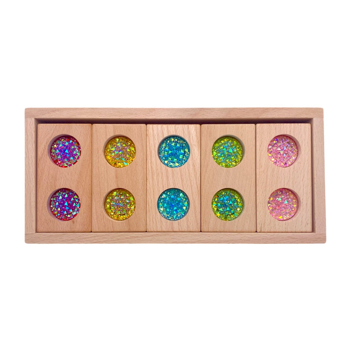 Pastel & Rainbow Gem Block Collection – 3 Styles with Wooden Storage Trays