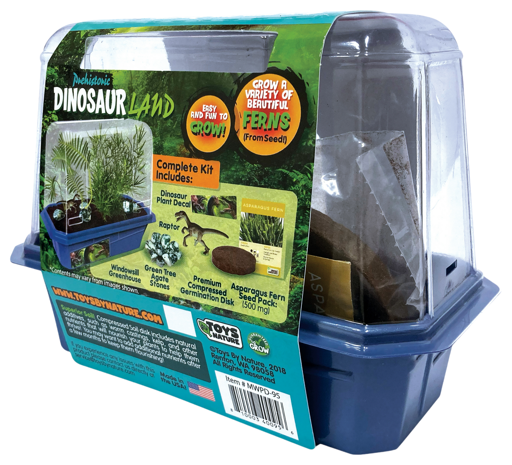 This exciting kit contains everything you need to create your own prehistoric dinosaur land. Let your dinosaur roam among lush prehistoric ferns and the captivating Green Tree Agate stones.The upright and arching ferns are easy and beautiful to grow and will last for years. These ferns are actually part of the lily family!
