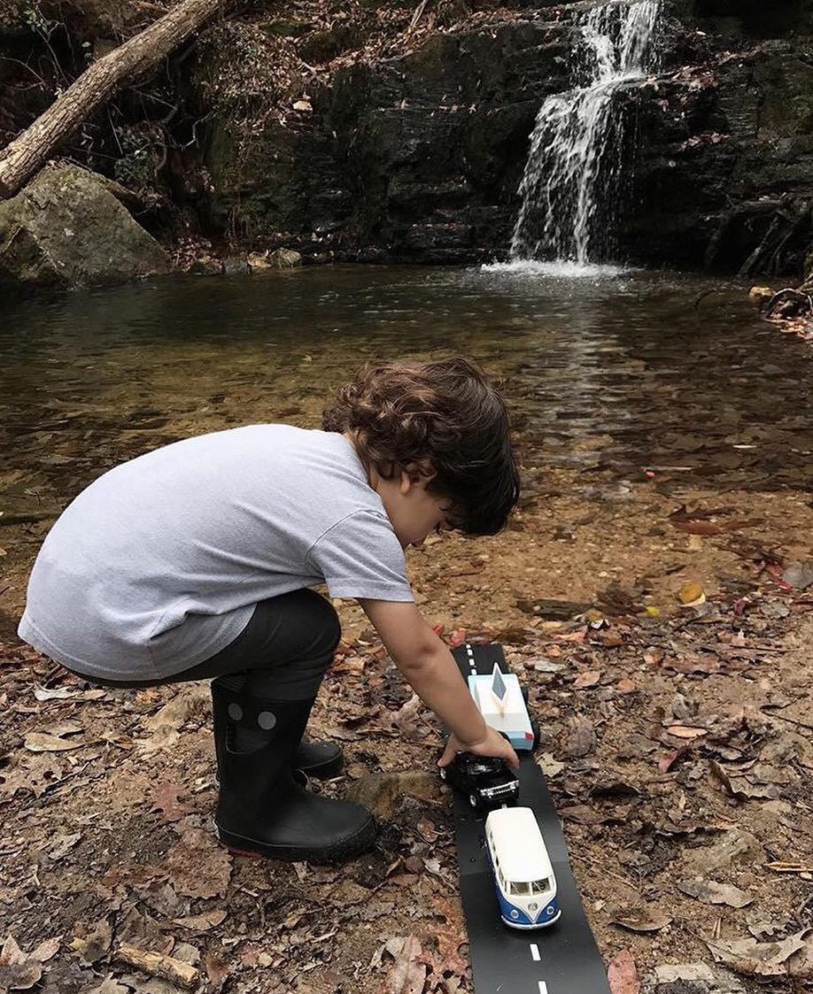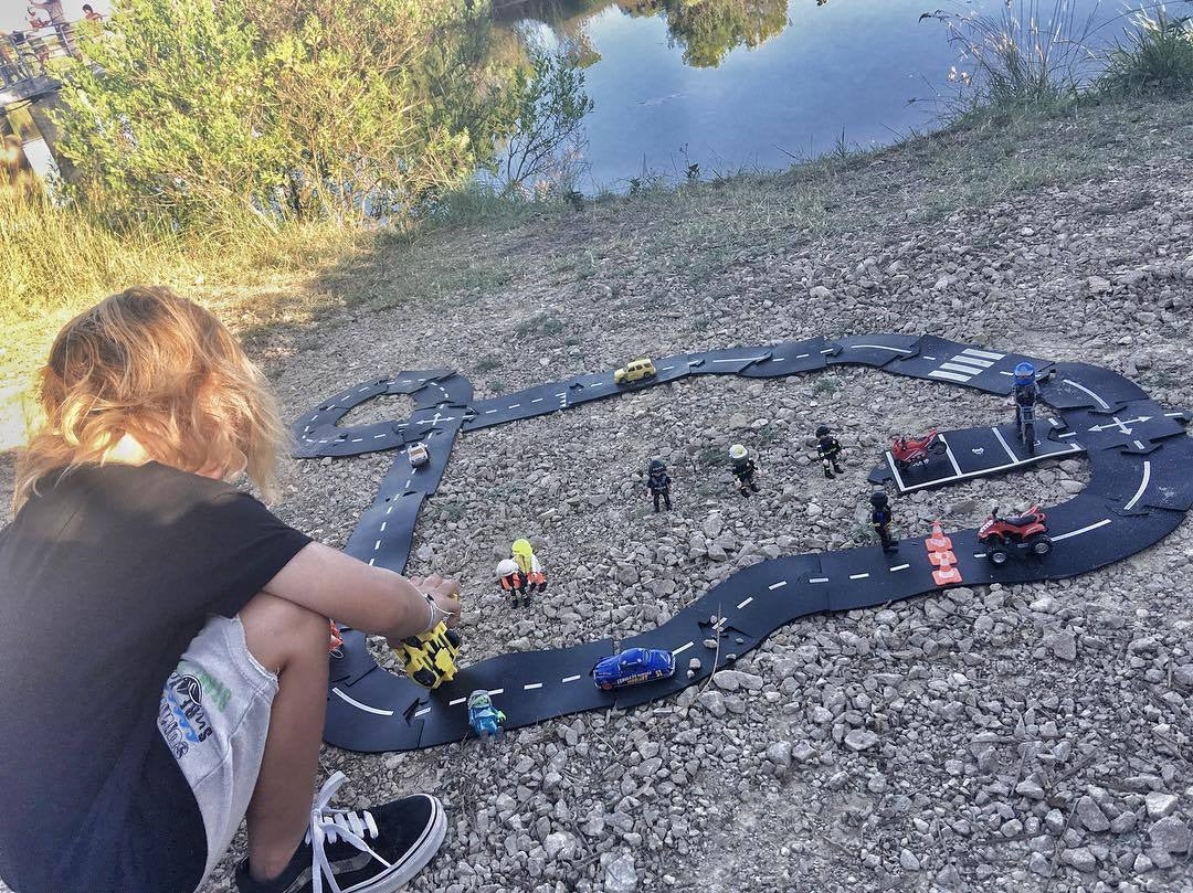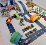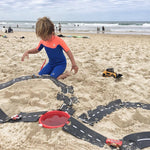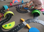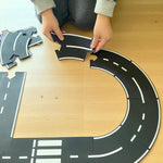 These flexible and open-ended rubber roads encourage imaginative and creative play. Building track and city street scenes utilizes fine motor skills and problem-solving. Adjustable track playset pieces are light enough for children to handle comfortably. This puzzle car track is bendable, waterproof, and easy to clean, perfect for indoor and outdoor play. It's a modern twist on a classic childhood favorite. Unleash the joy of playing with toy cars.